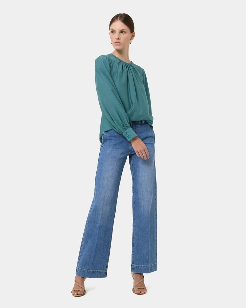 Stylish and smart, the Alessandra Gathered Neck Blouse is versatile for any occasion