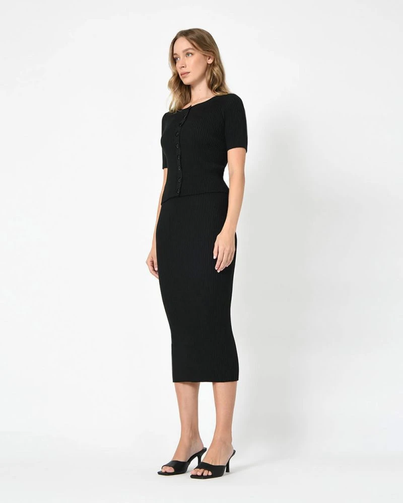 The Alessia Rib-Knit Midi Skirt is the perfect choice for your next smart casual event. Its classic style adds femininity to your wardrobe, featuring textured rib in a comfortable stretch knit that hugs the figure. Pair with strappy heels to take your outfit from desk to date or complete the set with the Alessia Button Down Rib-Knit Cardigan for a sophisticated ensemble.