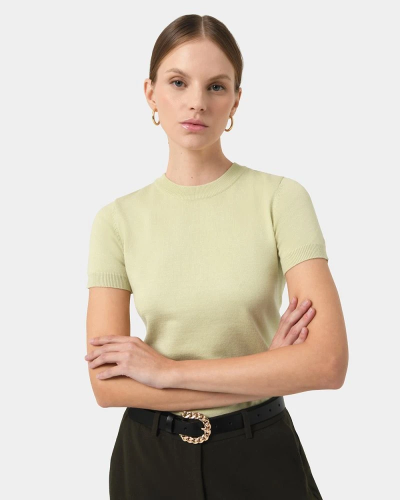 The Catherine Short Sleeve Knit is simple in design making it a versatile foundation for all your favourite separates