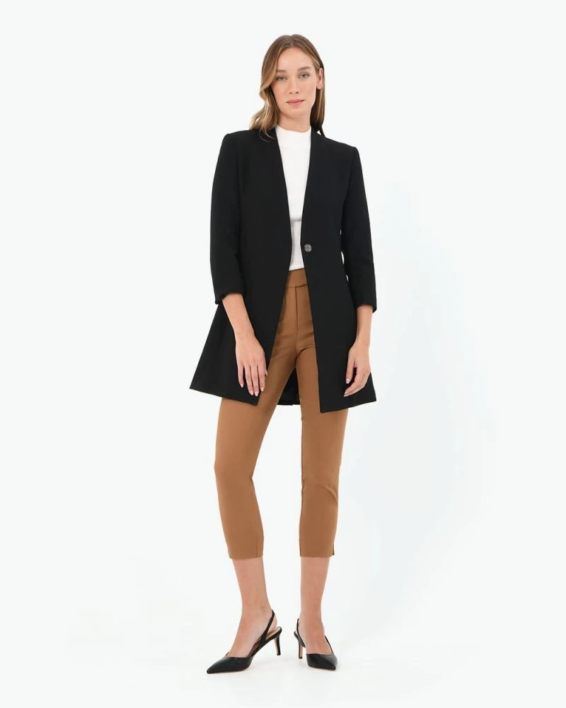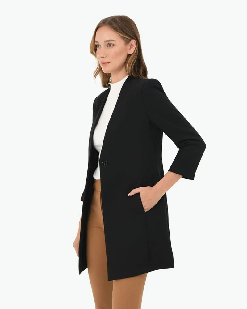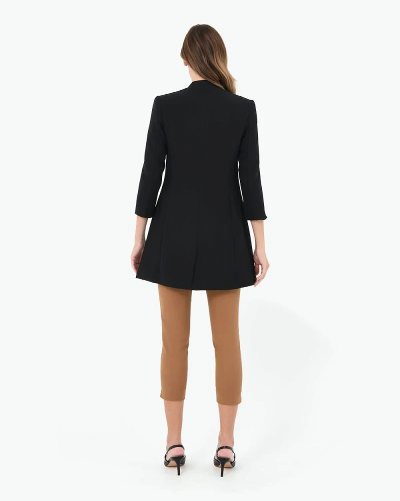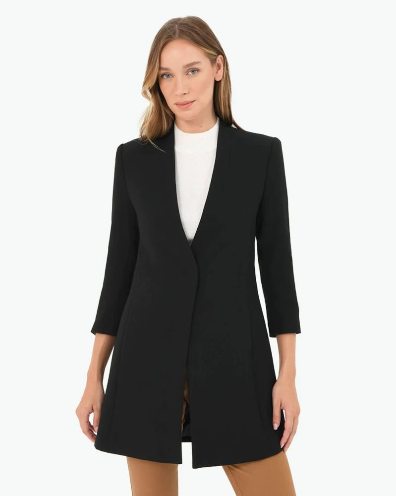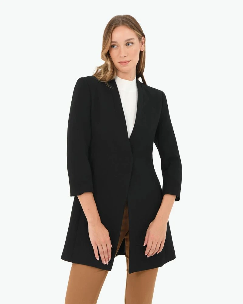 The Chanelle Collarless Coat has been refreshed with a modern twist
