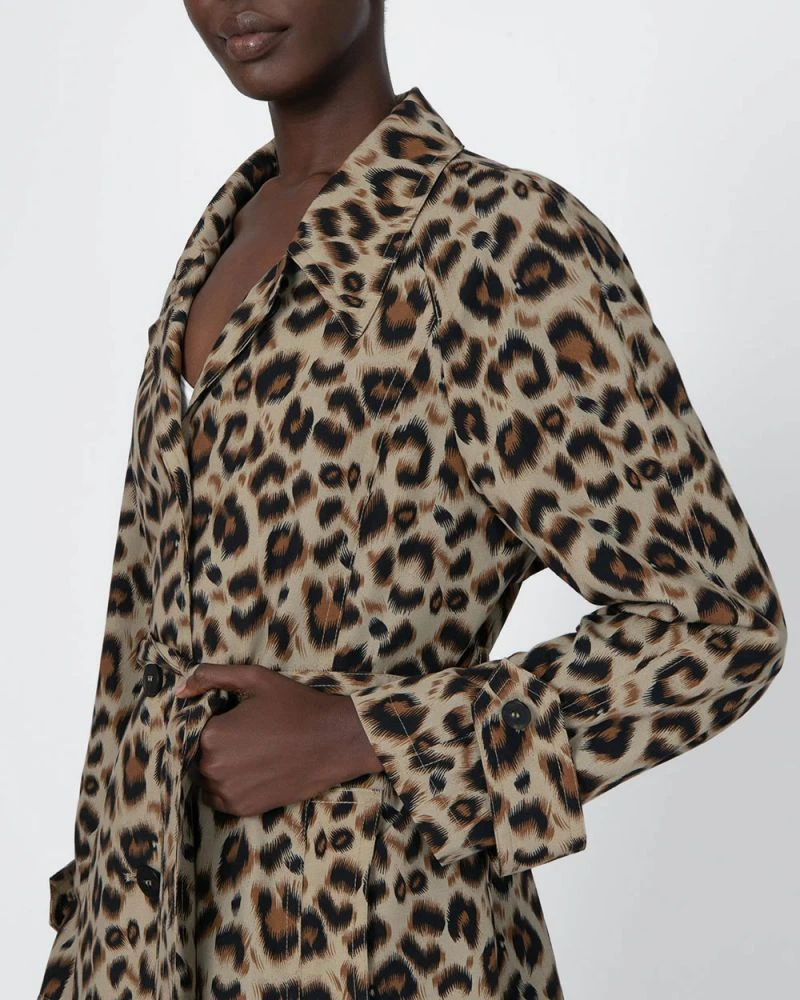 The Georgia Leopard Print Duster takes a classic style and gives it a fresh update. Designed with a leopard print, functional pockets and a tie waist, this trendy coat is both practical and stylish. Easily layer this coat with any of your existing work wardrobe and you鈥檙e good to go.
