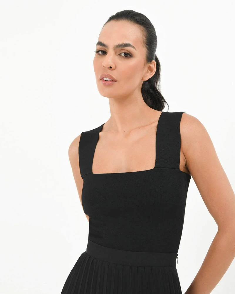 - Square neckline with thick straps