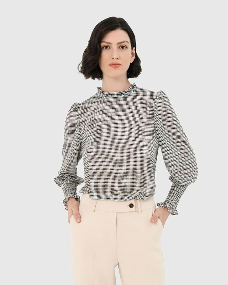 As flattering as it is to wear, the Jewel Ruffle Blouse will become your next go-to item in your closet. Perfect for the stylish girl on the go, easily transform your look from AM to PM with this versatile piece.