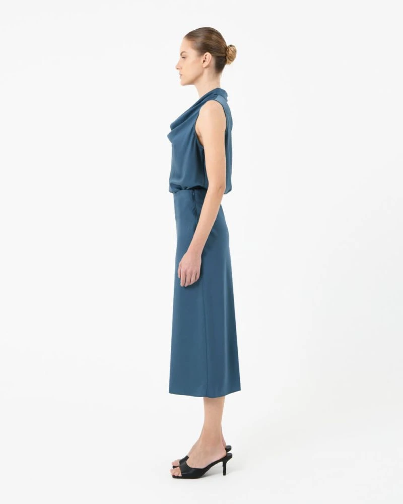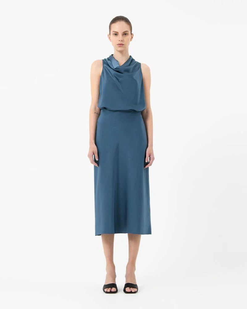 The Staria Bias Skirt is crafted to be the newest addition to your new-season wardrobe. Flowy and with a satin shine, it is a timeless workplace staple. Coordinate with the Staria Cowl Neck for a bold statement.